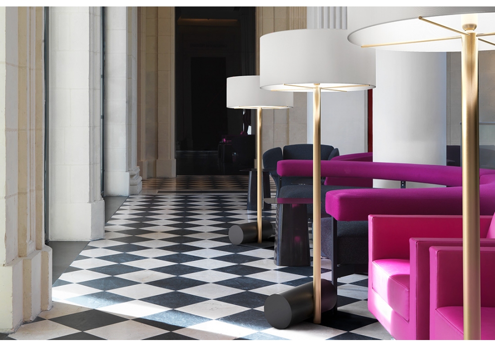 Calé(e) diseñada por Pool para CVL Luminaires es una lámpara de pie realizada en latón macizo y pantalla de tela. Disponible en diferentes acabados y dimensiones.