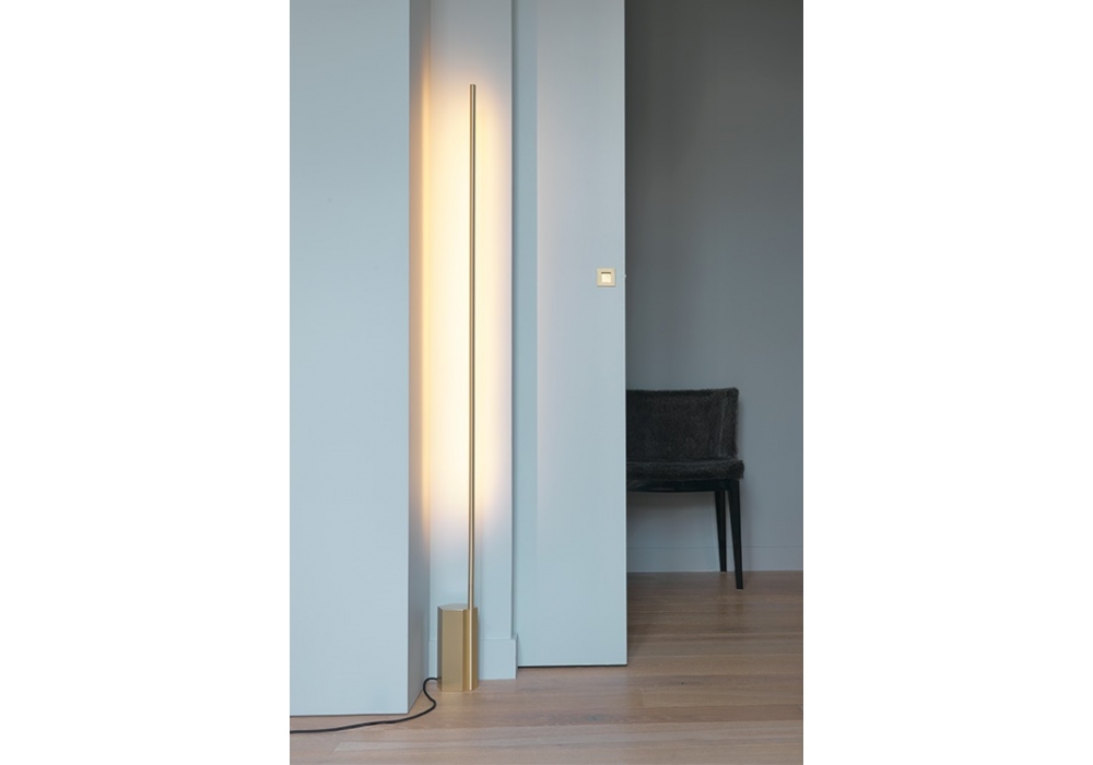Link diseñada por Émilie Cathelineau para CVL Luminaires es una lámpara de pie realizada en latón macizo y difusor de policarbonato satinado. Disponible en diferentes acabados.