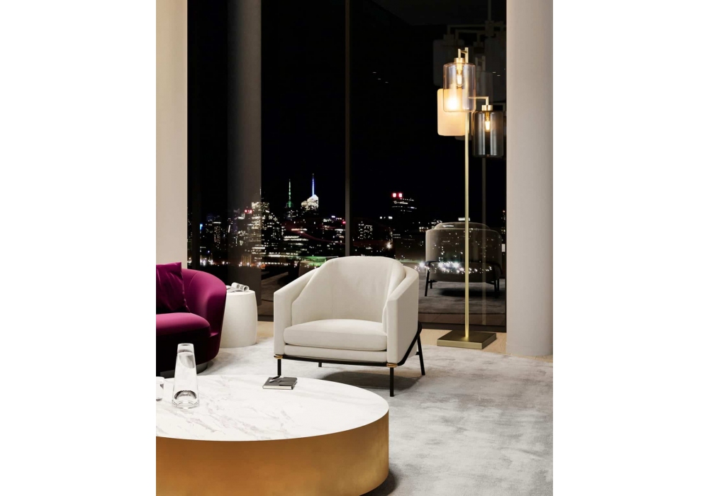 Louise diseñada por William Brand para Brand Van Egmond es una lámpara de pie realizada con estructura de metal y difusor de vidrio. Disponible en diferentes acabados y dimensiones.