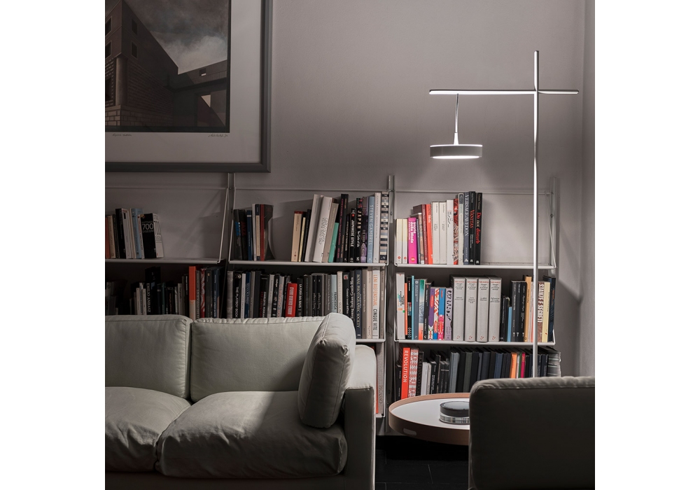 Tambù diseñada por Carlo Guglielmi para Firmamento Milano es una lámpara de pie/lectura con luz directa e indirecta realizada con una estructura de acero pintado. Disponible en diferentes acabados.