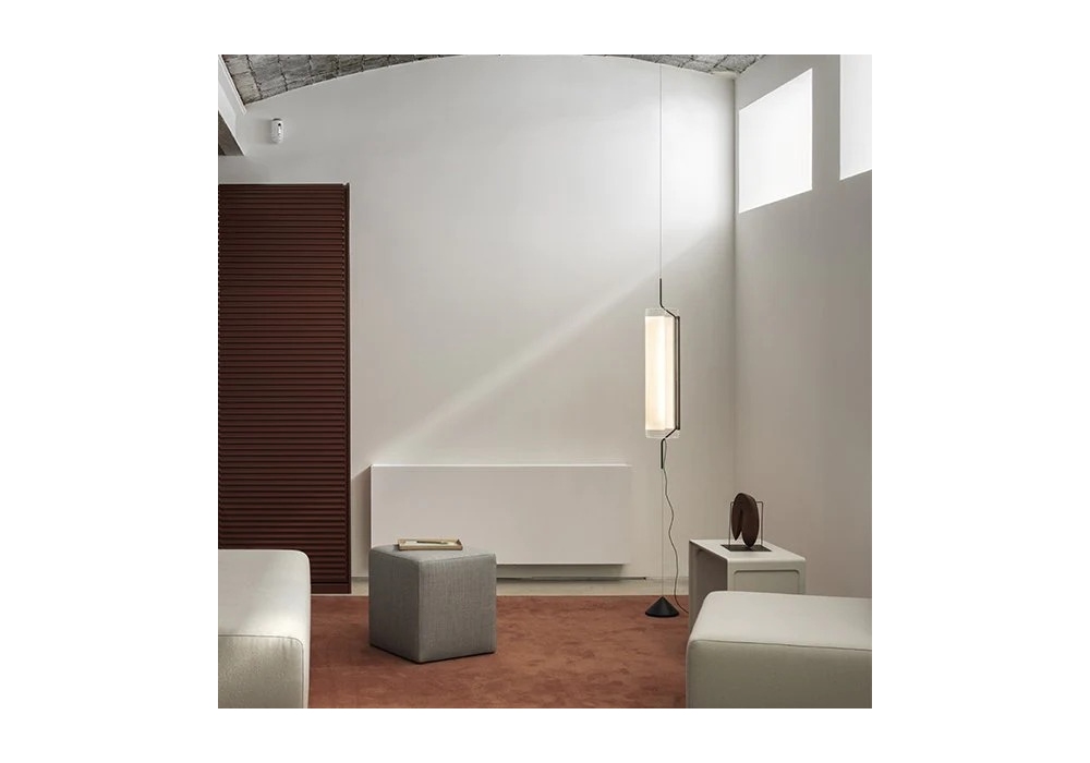Guise diseñada por Stefan Diez para Vibia es una lámpara de pie con perfil y estructura portante en aluminio pintado grafito y difusor cilíndrico en vidrio borosilicato transparente. La fuente de luz adoptada es de tipo LED con sistema de regulación del flujo luminoso mediante sensor óptico.