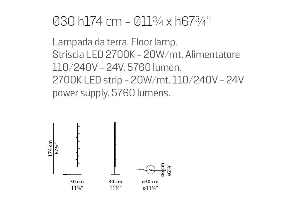 Wave diseñada por Federico Peri para Baxter es una lámpara de pie con fuente de luz LED. Difusor de vidrio. Atenuación táctil.
