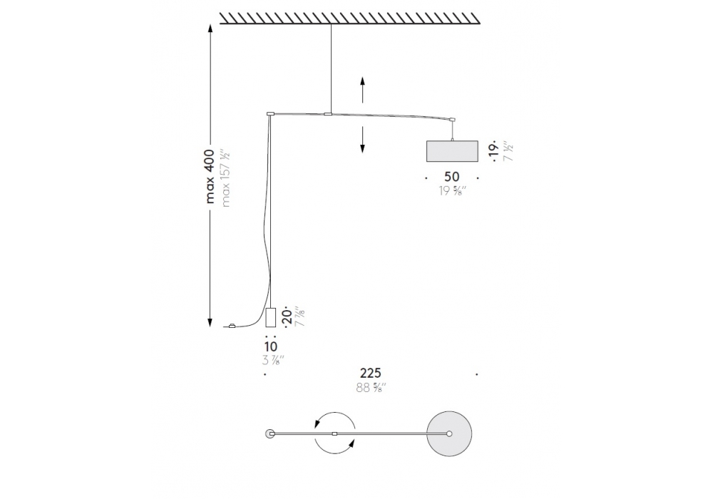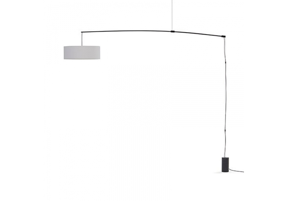 DT Light 25 diseñada por Phil Luithlen para DePadova es una lámpara de pie-techo con un vástago suspendido y una base de mármol con contrapeso que permite una rotación de 360° y un ajuste de altura. Disponible en dos versiones: vástago blanco con base de mármol Calacatta dorado y controles coordinados, o vástago negro con base de mármol Marquinia pulido. Pantalla de algodón blanco con difusores de PVC satinado. Regulador de intensidad integrado en el cable de alimentación para un control sencillo e intuitivo.