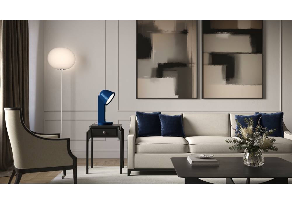 Glo-Ball F3 diseñada por Jasper Morrison para Flos es una lámpara de pie de luz difusa. El difusor está compuesto por un cristal opalino soplado y revestido con un acabado externo ácido y una tuerca roscada de aleación de aluminio fundido a presión con acabado galvánico. Base de acero de gran espesor, vástago de acero tubular y soporte del difusor de aleación de aluminio fundido a presión, todo ello pintado en gris líquido. El cable cuenta con un regulador electrónico que permite regular la intensidad de la luz. Bombilla no incluida.