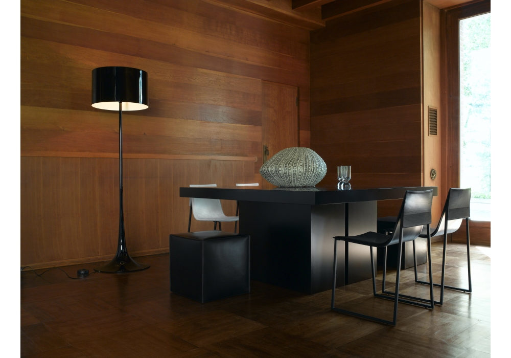 Spun Light F diseñada por Sebastian Wrong para Flos es una lámpara de pie con base, cuerpo y difusor de chapa metálica torneada y pintada. El difusor es circular y utiliza una fuente de luz LED con sistema de regulación de intensidad en el cable de alimentación. Bombilla no incluida.