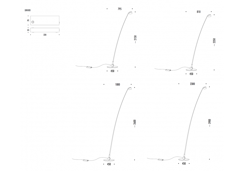 | Dimensiones | Ø 45 x 79,5 x H 215 cm; Ø 45 x 81 x H 235 cm; Ø 45 x 100 x H 260 cm; Ø 45 x 230 x H 390 cm. |