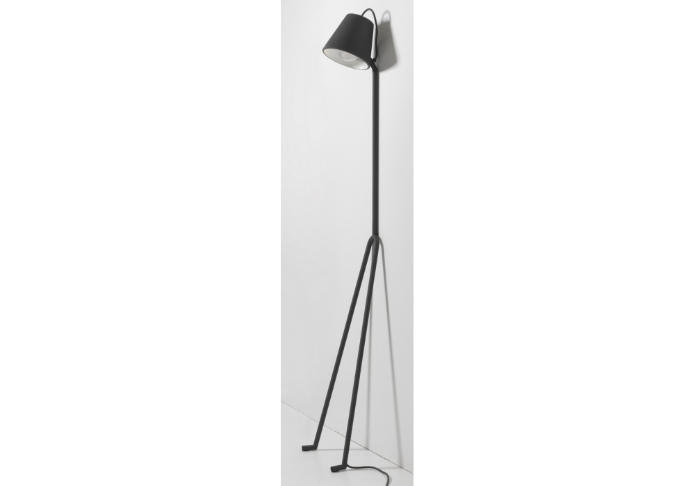 Mañana by Design House Stockholm is a floor lamp. Marie-Louise Gustafsson’s Mañana Lamp seems to have escaped from a comic strip, an insolent caricature leaning against the wall, just waiting for someone to turn it on. And why shouldn’t a lamp have plenty of character, a pencil thin, graphite grey sketched portrait with the power to entertain and tease? Marie-Louise’s approach mimics her everyday self, and is retained in the lampshade that can adjust its gaze sideways. “I rarely get an idea as quickly and directly as this, but the Mañana lamp came like a flash. I had worked too hard prior to an exhibition, and I drew my own body in different shapes in order to relax and get some perspective. And the form just stepped right out at me, out of the sketch book, and I rushed to the workshop!” Marie-Louise also designed the bicycle basket Carrie for Design House Stockholm.