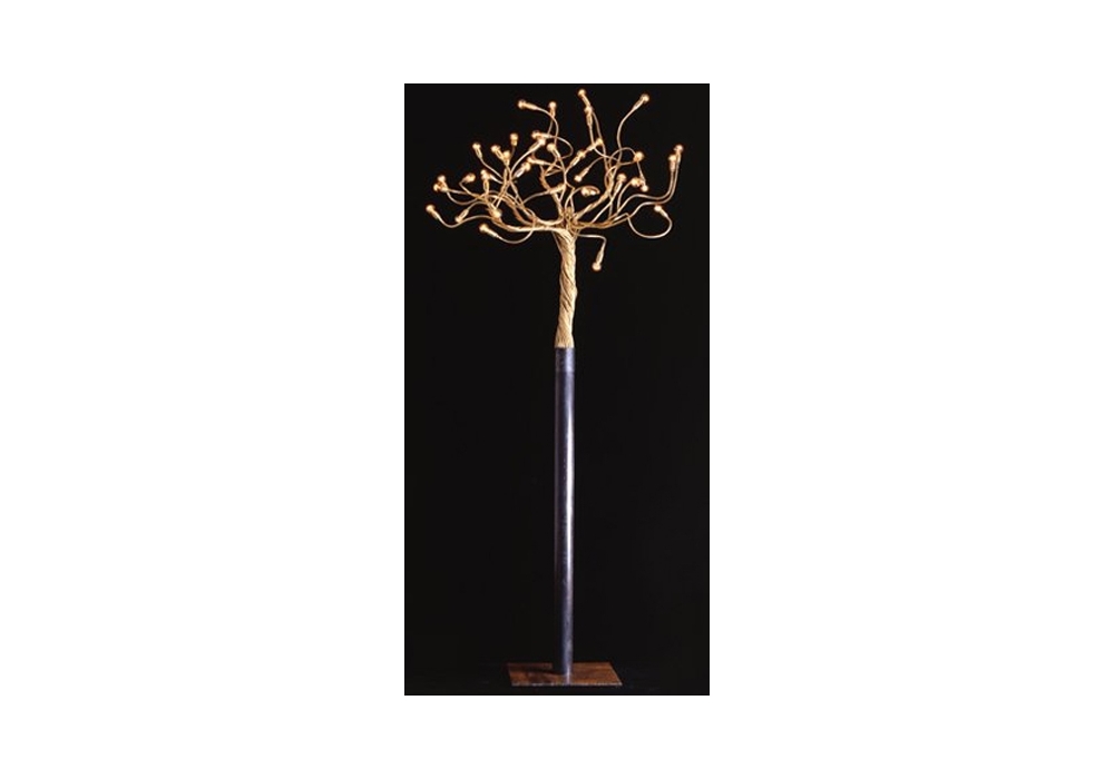 Albero della Luce diseñada por Enzo Catellani para Catellani & Smith es una lámpara de pie con base en hierro crudo encerado y flex moldeable en latón. La fuente de luz es LED y está equipada con un atenuador inalámbrico. Forma parte de la serie Turciù, que indica el gesto de poder torcer y dar forma libremente a los brazos flexibles de las lámparas.