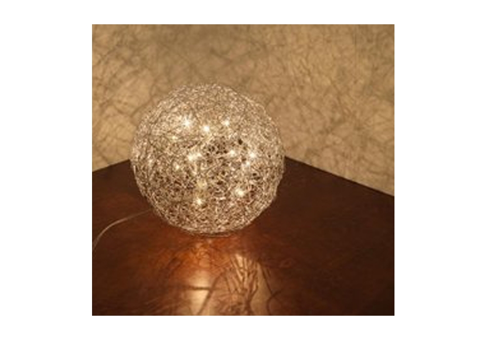 Fil de Fer F diseñada por Enzo Catellani para Catellani & Smith es una lámpara de pie LED regulable, realizada en alambre de aluminio moldeado y trenzado, iluminada en el interior gracias a la presencia de diminutas bombillas. La esfera está disponible en dos acabados: aluminio natural (cable gris) o anodizado oro mate (cable oro). Disponible en diferentes tamaños.