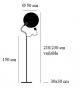 | Dimensiones | Base 30 x 30 cm; disco Ø 50 cm; varilla H 150; H 210-230 cm |