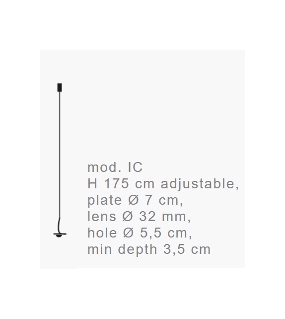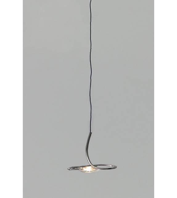 Jackie O IC diseñada por Enzo Catellani para Catellani&Smith es una lámpara empotrada en cobre niquelado con cable azul. Fuente de alimentación disponible en diferentes versiones.