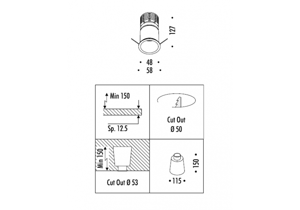 Buco 58 diseñada y producida por Davide Groppi es una lámpara de techo empotrable cilíndrica completamente realizada en metal pintado. La fuente de luz adoptada es del tipo LED que se puede atenuar en diferentes gradaciones de luz. Buco 58 está disponible en diferentes acabados.