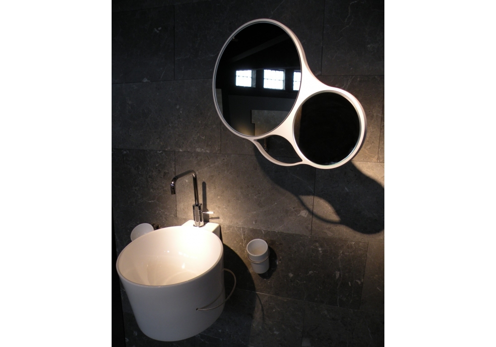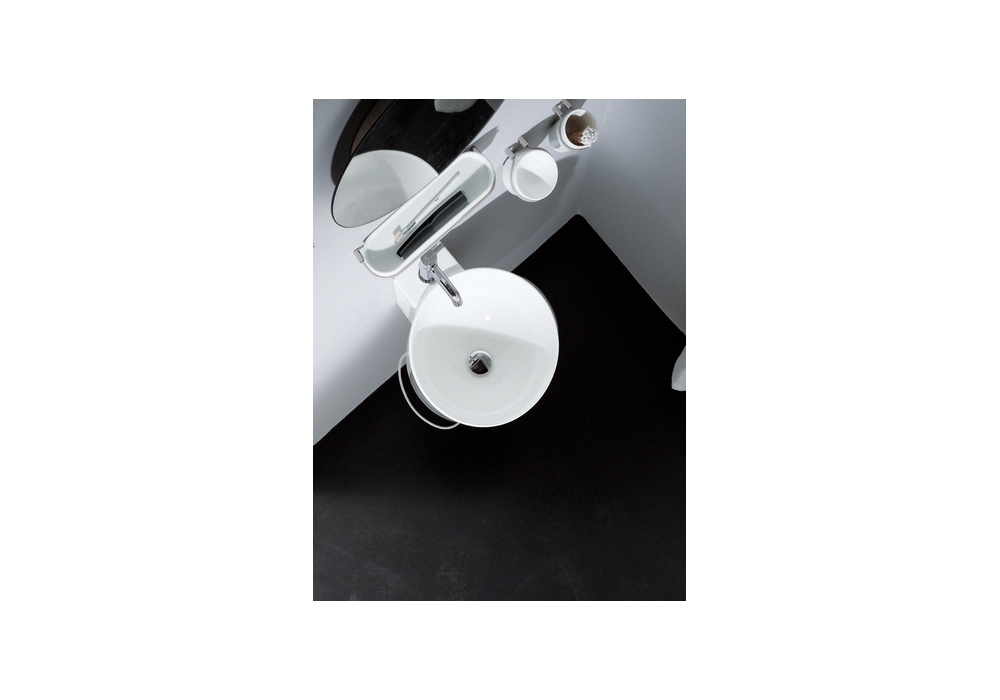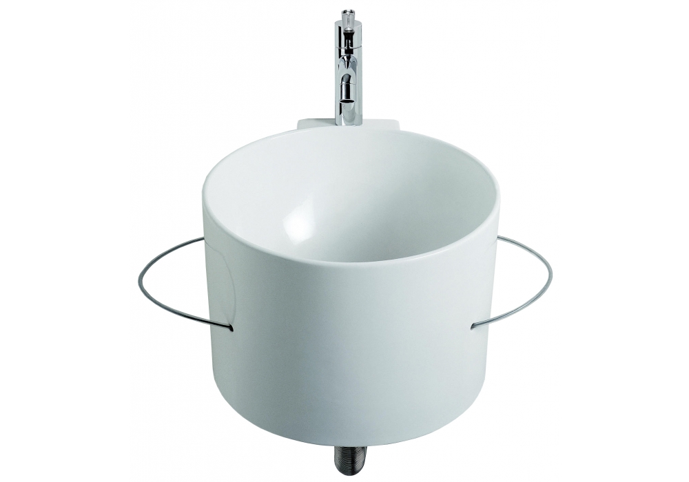 Bucatini diseñado por Fabio Bortolani & Ermanno Righi para Agape es un lavabo circular en arcilla refractaria blanca con o sin orificio para grifería, desagüe libre, que incluye kit de fijación. Utilice drenaje. Equipado con toalleros laterales en cable de acero revestido en material plástico opaco blanco, negro o transparente.