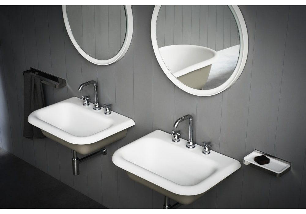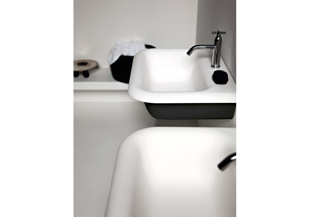 Ottocento diseñado por Benedini Associati para Agape es un lavabo en Cristalplant® biobased, con desagüe libre y con kit de fijación incluido. Utiliza desagüe. Disponible en diferentes acabados.