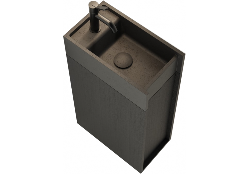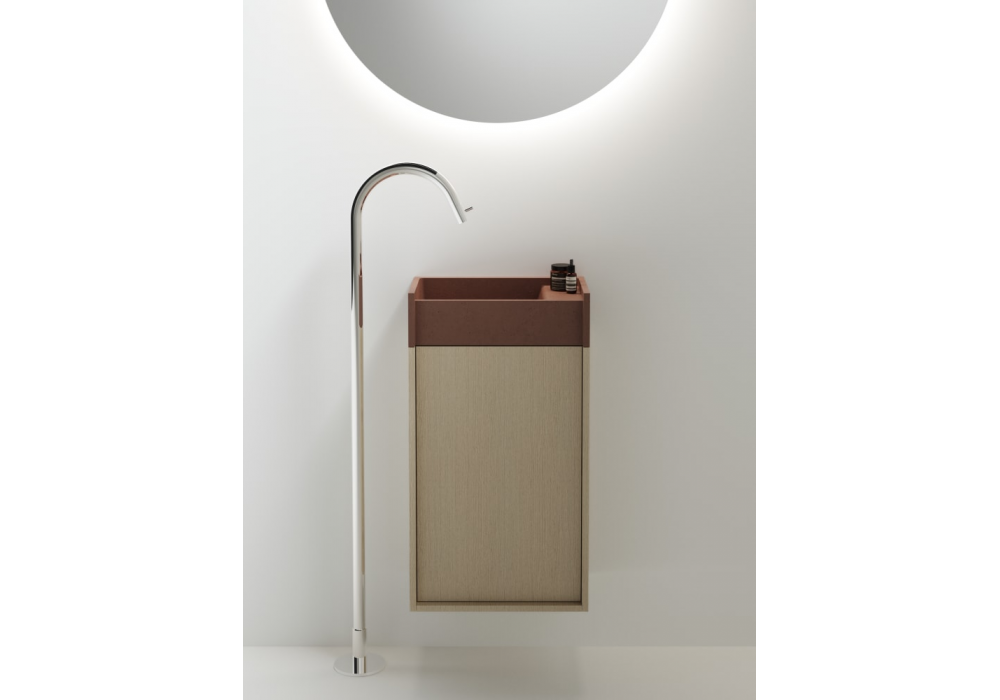 Ventiquaranta diseñado por LucidiPevere para Agape es un lavabo de pared realizado en hormigón en diferentes colores y estructura de MDF revestido en roble. Disponible en diferentes modelos.