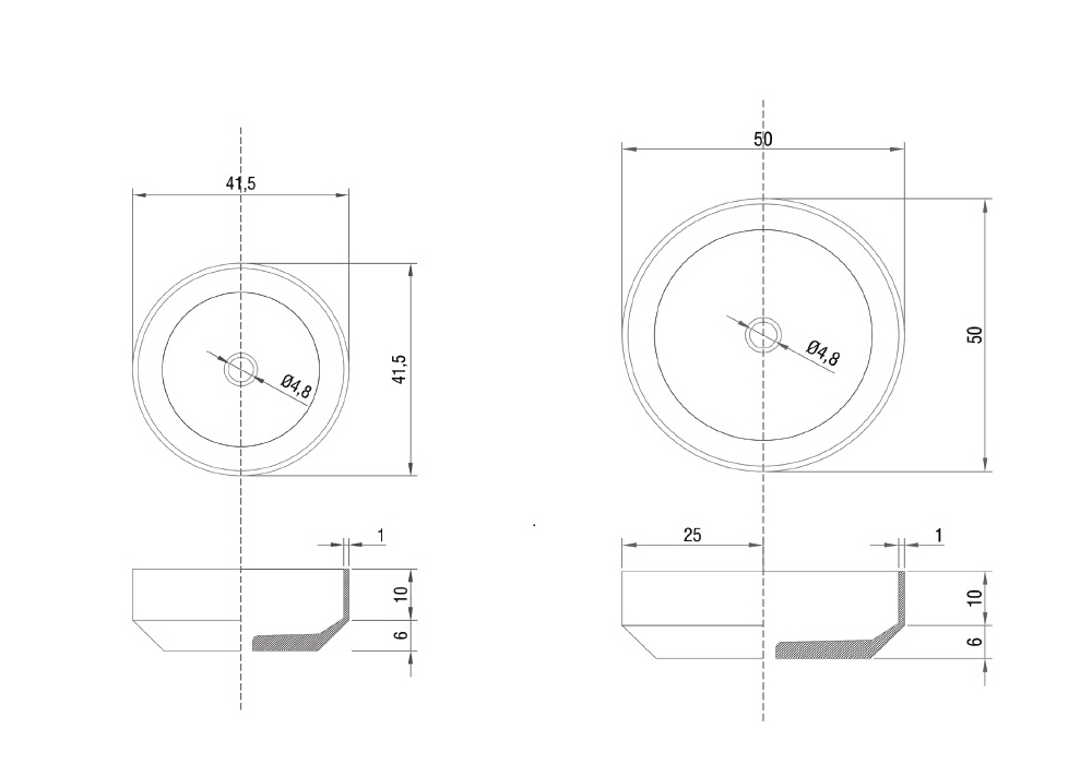 | Dimensiones | Ø 41.5 x H 16 cm; Ø 50 x H 16 cm. |