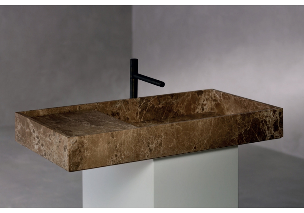 Empire diseñado por Christophe Pillet para Kreoo es un lavabo de forma cuadrangular realizado íntegramente en mármol con estante para accesorios y desagüe oculto. Empire está disponible en diferentes acabados.