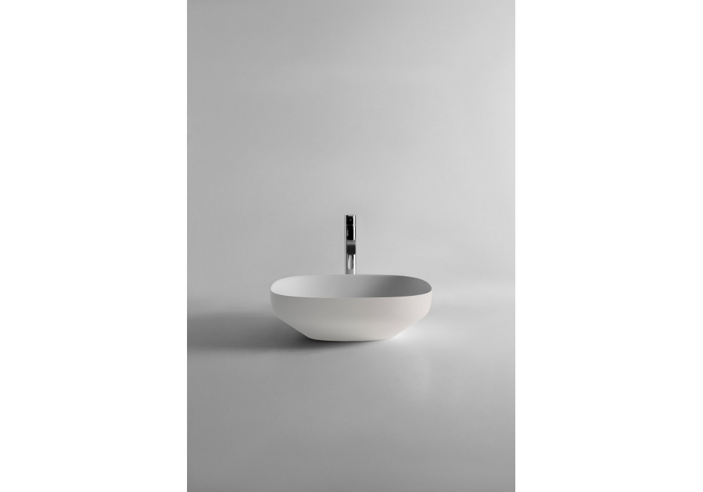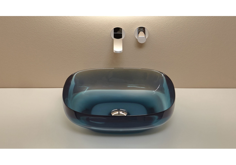 Ago diseñado por Mario Ferrarini para Antonio Lupi es un lavabo ovalado sobre encimera en Flumood, Colormood, Stone, Cristalmood o Icemood. Incluye desagüe con salida abierta y conexión para sifón.