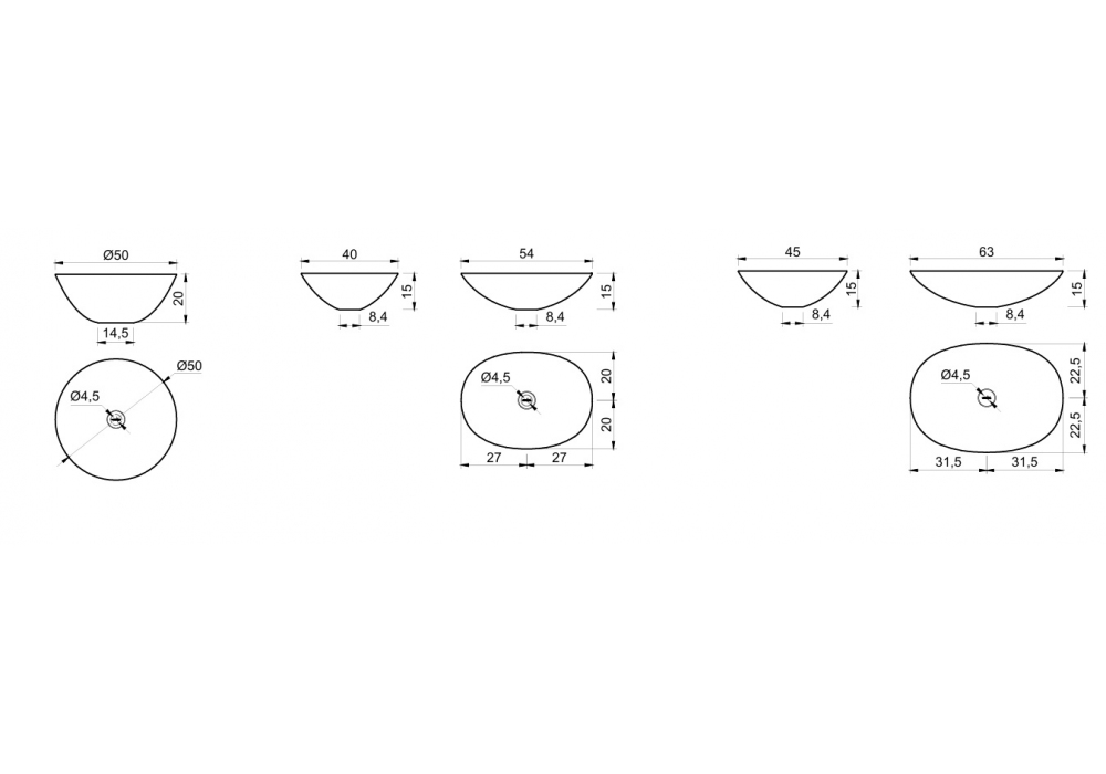 | Dimensiones | 54 x 40 x H 15 cm; 63 x 45 x H 15 cm; Ø 50 x H 20 cm. |