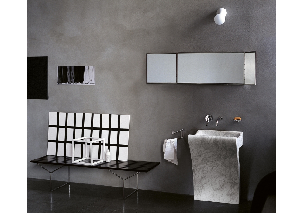 Lito 1 diseñado por Angelo Mangiarotti para Agape es un lavabo rectangular de mármol en diferentes acabados, con apoyo a suelo, sin orificio para grifería, desagüe gratuito, incluye kit de fijación. Utiliza desagüe. Los lavabos realizados en granito Petit pueden ser aptos tanto para ambientes interiores como exteriores.