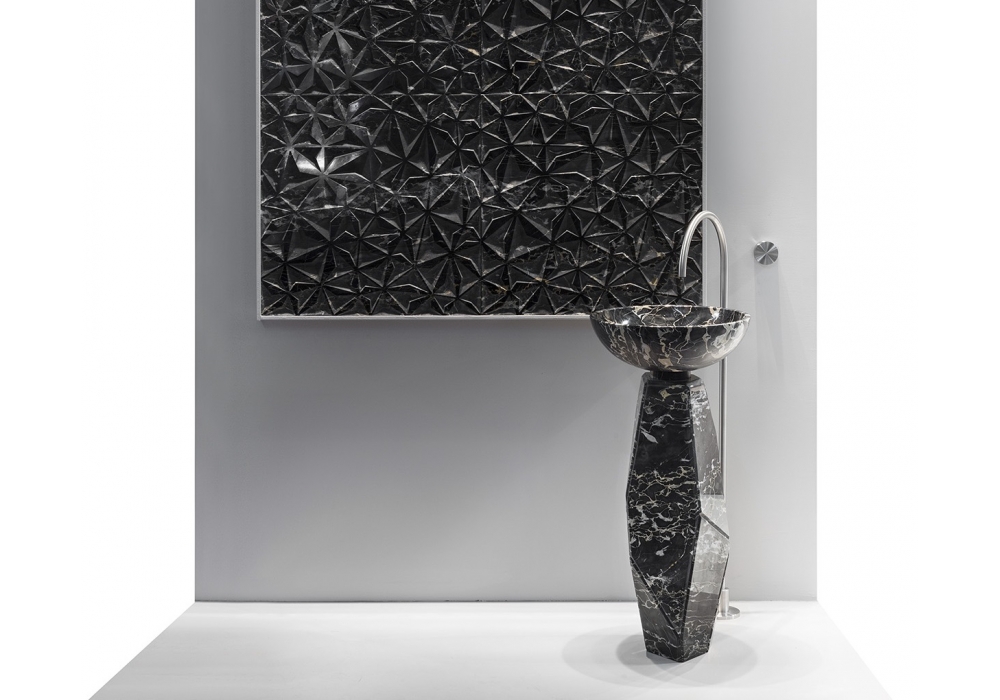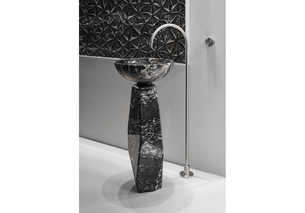 Vulcano diseñado por Marco Piva para Lithea es un lavabo de pie realizado en mármol, disponible en diferentes acabados.
