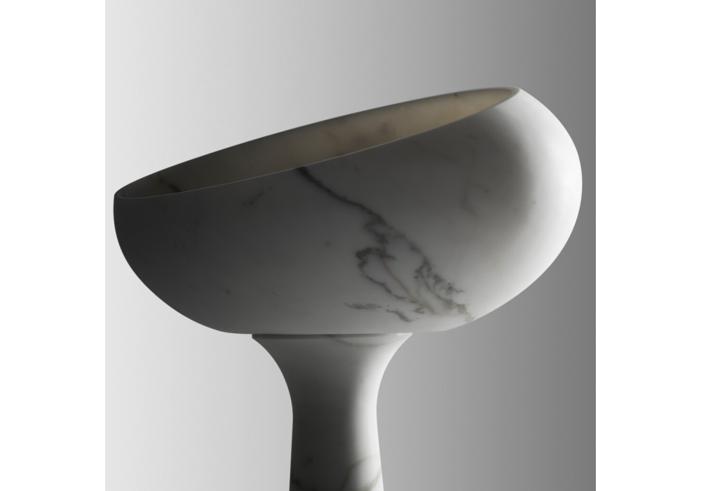 Gong diseñado por Enzo Berti para Kreoo es un lavabo independiente con cubeta de forma elipsoidal con corte diagonal. Realizada íntegramente en mármol en diferentes acabados. La superficie interna también se puede realizar en contraste cromático, con un barniz texturizado.