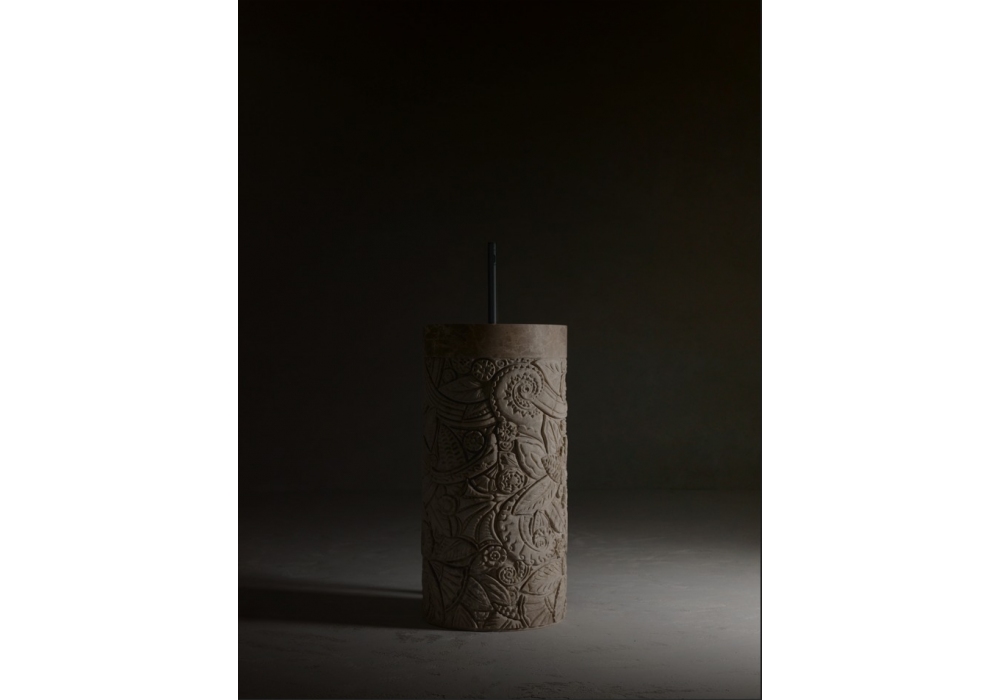 Mercy diseñado por Christophe Pillet para Kreoo es un lavabo de columna de forma cilíndrica realizado íntegramente en mármol esculpido a mano con motivos arcaicos. El anillo superior tiene una superficie lisa con acabado mate. Mercy está disponible en diferentes acabados.
