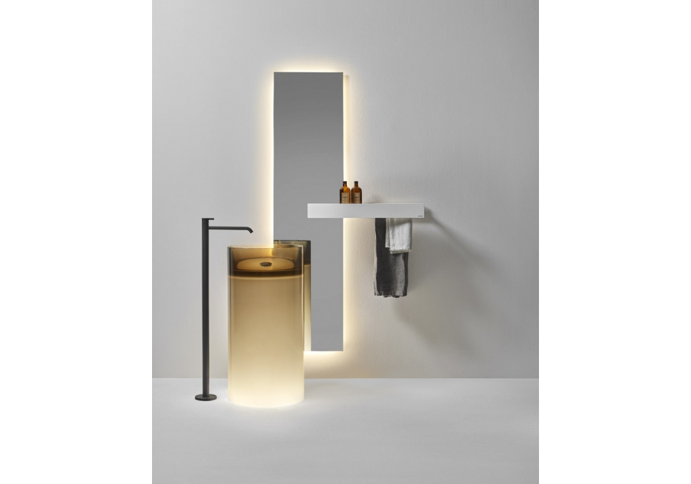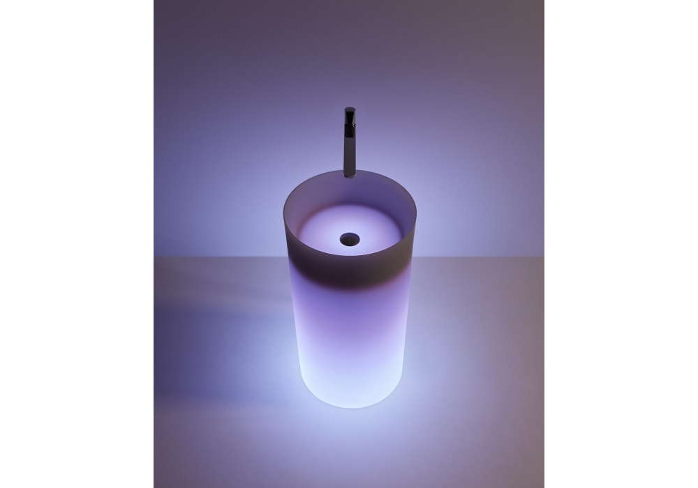 Breeze diseñado por Antonio Lupi es un lavabo de pie realizado en Cristalmood o Icemood con desagüe a suelo, con o sin iluminación LED, disponible en varios colores, con cuerpo mate completo con desagüe abierto, sifón y tubo rígido.