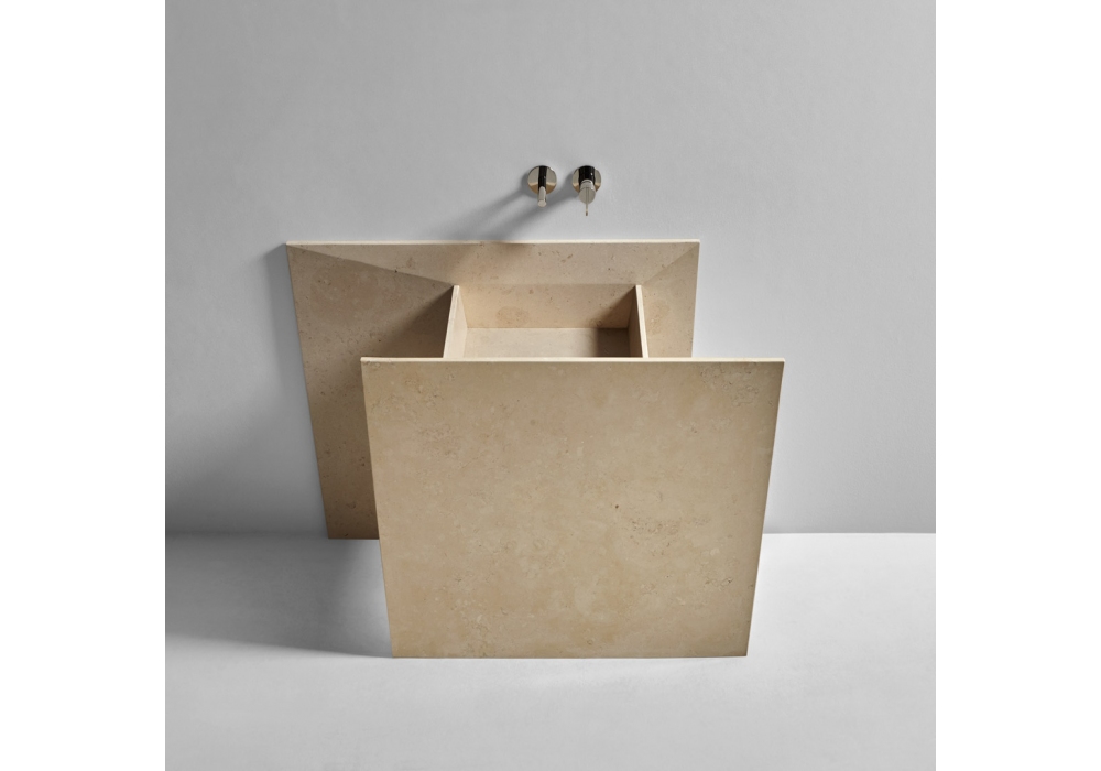 Skyline diseñado por Antonio Iraci para Antonio Lupi es un lavabo de piedra de pared. Incluye desagüe abierto.