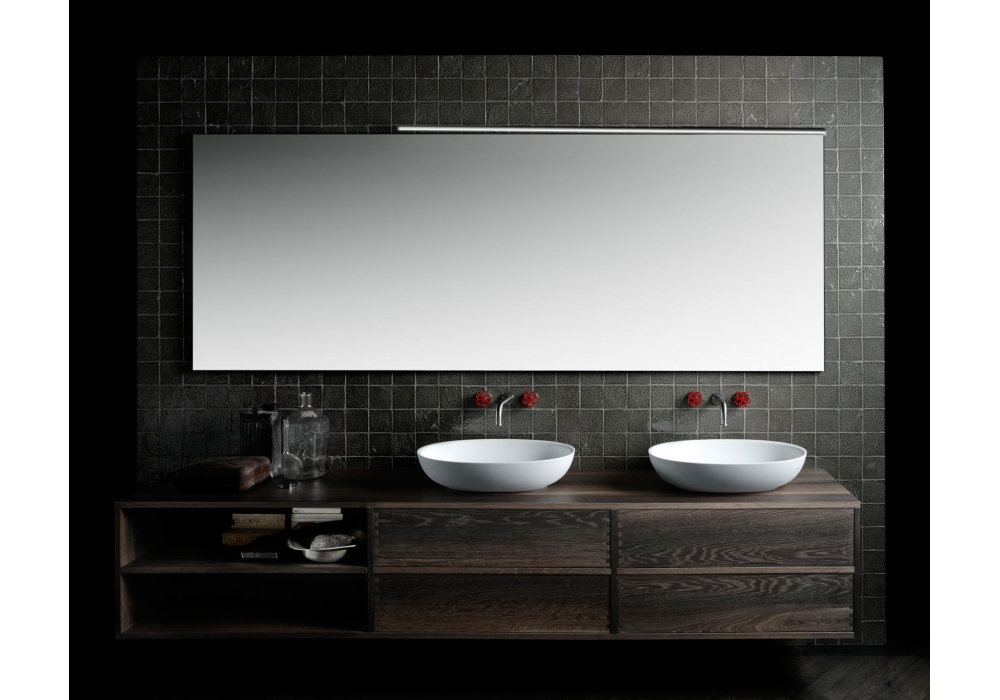 Fisher Island diseñado por Piero Lissoni para Boffi es un lavabo de apoyo en Cristalplant® blanco mate. Disponible en versión total blanca o con estructura externa lacada soft touch en gris antracita.