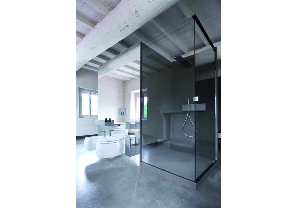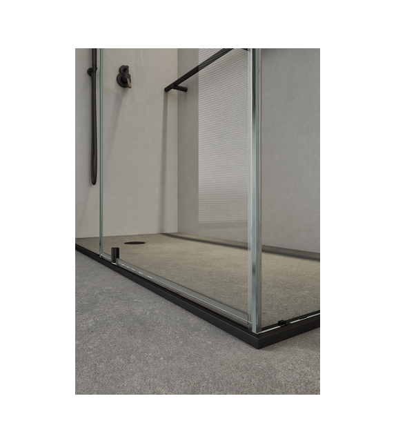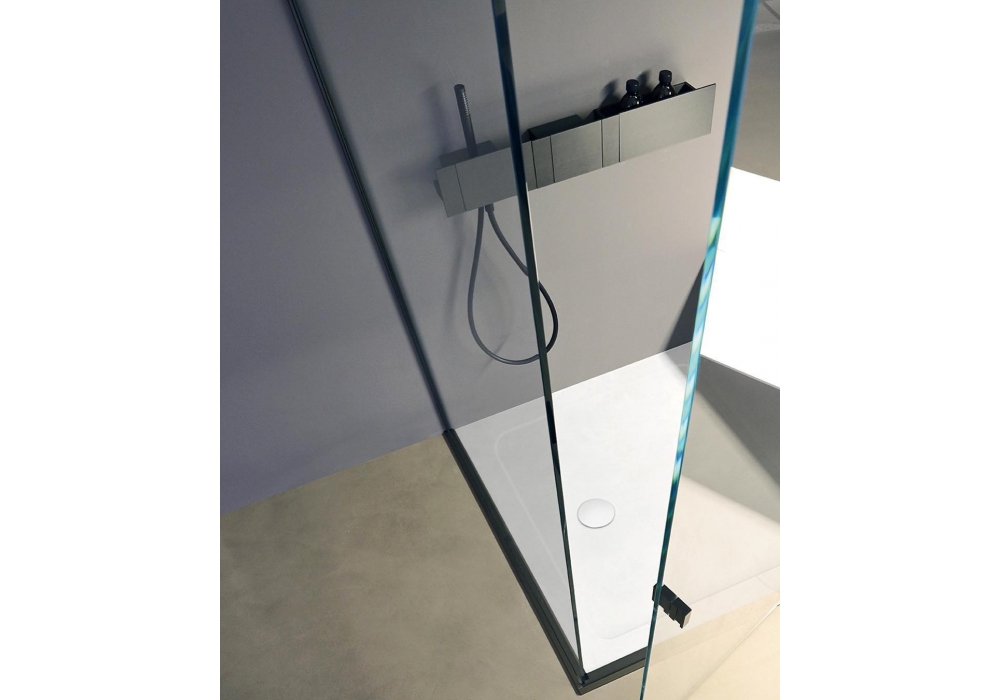 Plan-a diseñada por Giulio Gianturco & Mario Tessarollo para Agape es una mampara ducha en cristal trasparente extraclaro o fumé, sostenidas por elementos de aluminio anodizado cepillado natural o negro. Plan-a es preparada para ser instaladas al suelo o sobre cualquier tipo de plato de ducha. Disponible para duchas son en nicho o angular. Es posible adquirir solo el herraje.