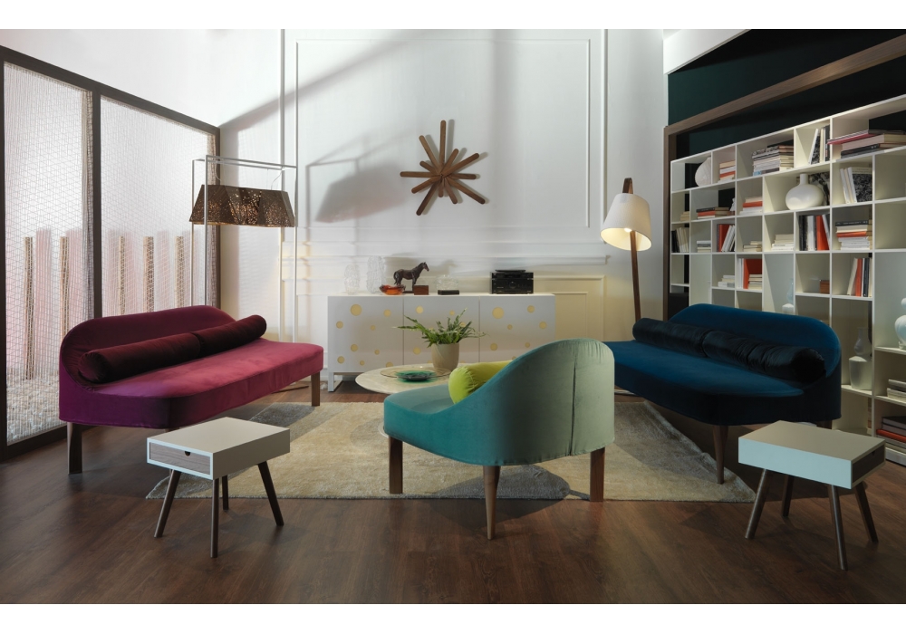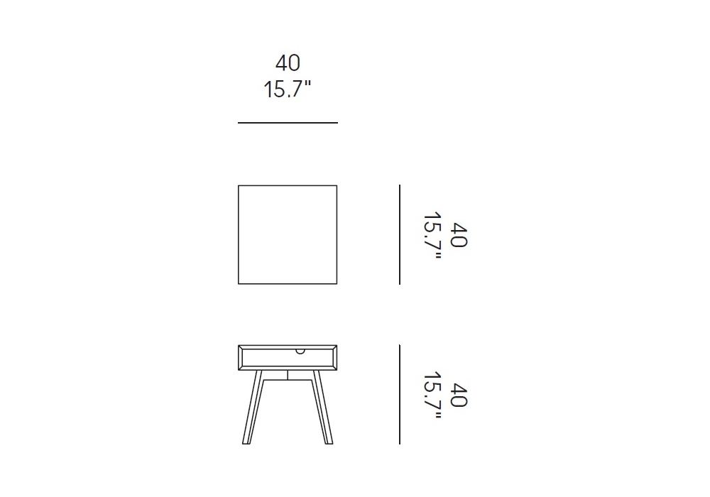 Io & Te diseñada por Esa Vesmanen para Casamania & Horm es una mesita de noche con patas en nogal americano macizo, estructura en MDF lacado mate, cajón extraíble a ambos lados en MDF chapado en nogal con frente en nogal y otro color lacado como la tapa . El interior de la estructura es siempre lacado en blanco.