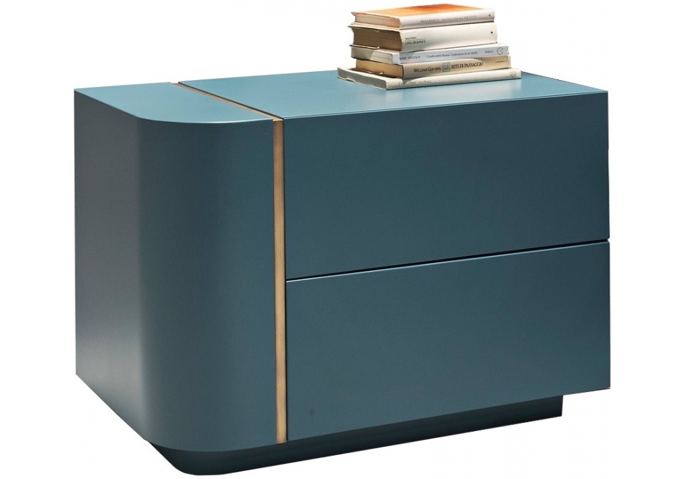 Dimitri 70 diseñada por Andrea Parisio de Meridiani es una mesilla de noche con estructura en madera. Disponible en acabado lacado mate, brillante, mate bicolor o brillante bicolor. Insertos en madera barnizados latón bronceado.