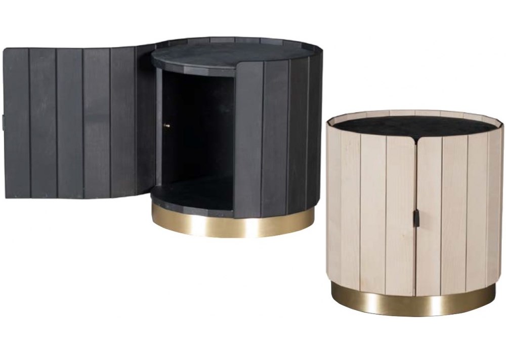 Ninfea diseñada por Pietro Russo para Baxter es una mesilla de noche con estructura en madera y base en latón satinado. Superficie tapizada en piel.