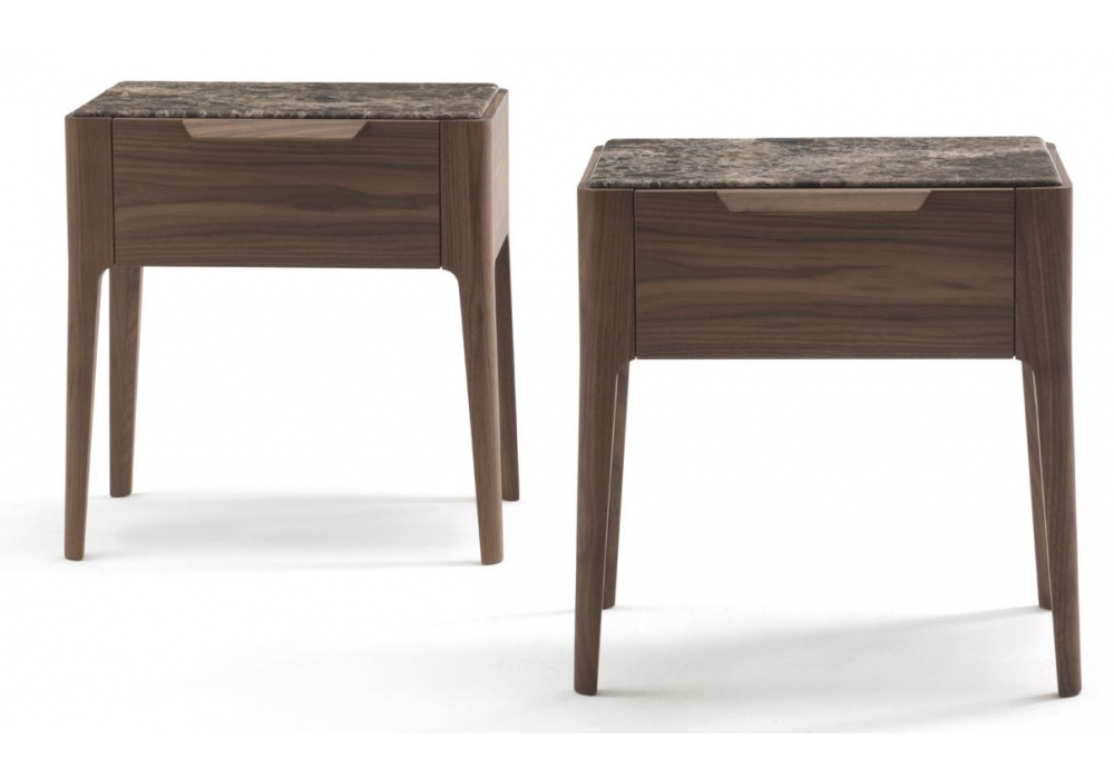 Ziggy Night diseñada por Carlo Ballabio para Porada es una mesilla de noche con estructura en nogal canaletta macizo disponible en diferentes acabados. Tapa en mármol, madera o cristal al ácido retrobarnizado. Disponible en diferentes dimensiones.
