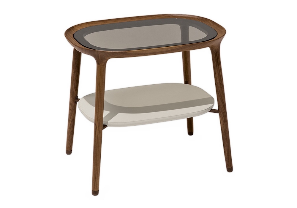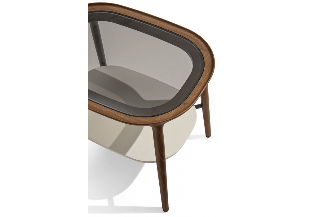 Romeo diseñada por Roberto Lazzeroni para Giorgetti es una mesilla de noche con estructura en madera de nogal canaletto disponible en 3 acabados y tablero en mármol o cristal.