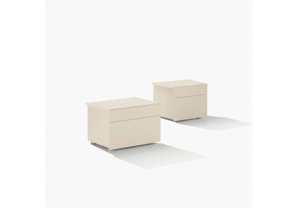 Abbinabili diseñada por Poliform es una colección de mesitas de noche con estructura lacada mate o brillante o roble spessart. Patas de plástico.