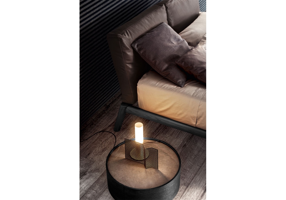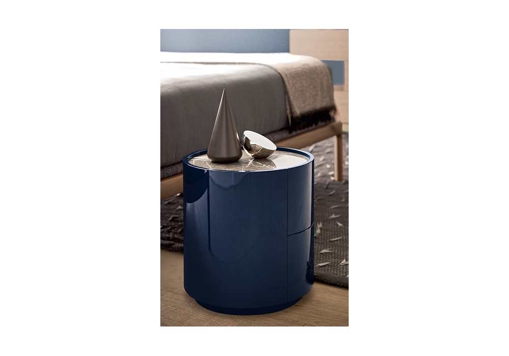 Dedalo diseñada por Pianca es una colección de mesitas de noche cilíndricas con múltiples posibilidades de uso y personalización. Realizado con estructura con paneles de partículas de madera y tapa rebajada realizada con paneles, revestidos de diferentes materiales. Disponible con zócalo o con base metálica.