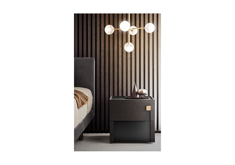 Logos diseñada por Calvi Brambilla para Pianca es una mesita de noche con estructura realizada en paneles de partículas de madera en Essenza o lacado brillante o mate. Tapa y frentes con bordes en material sintético. La tapa siempre tiene el mismo acabado que los frentes internos. Decoración metálica. Disponible en diferentes acabados y dimensiones.