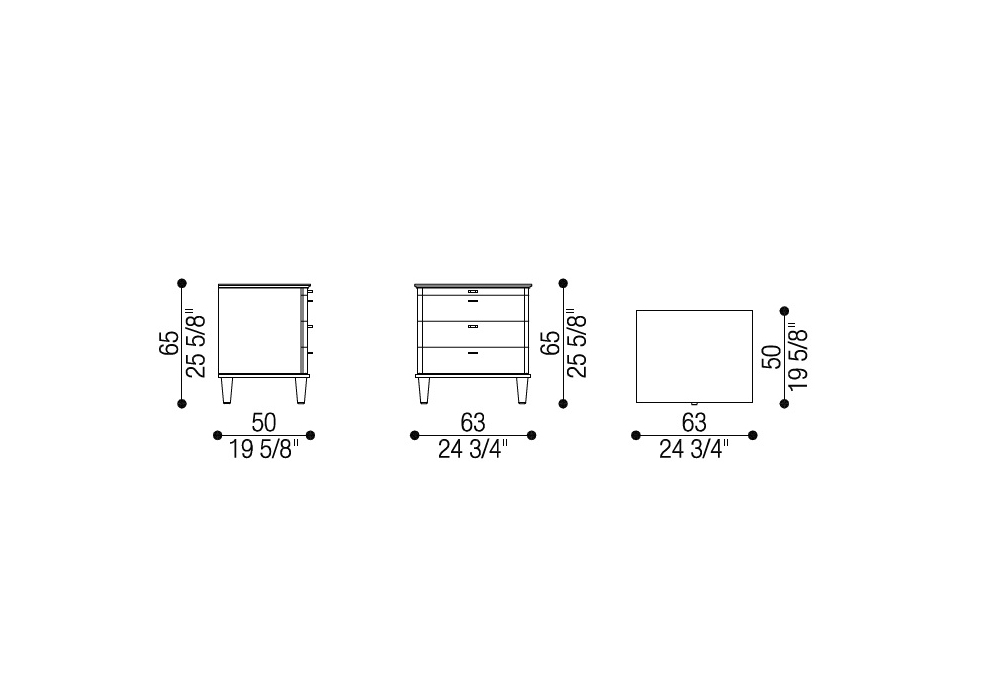 Desiré diseñada por Castello Lagravinese Studio para Opera Contemporary es una mesita de noche realizada en madera con tiradores y puntas en metal.