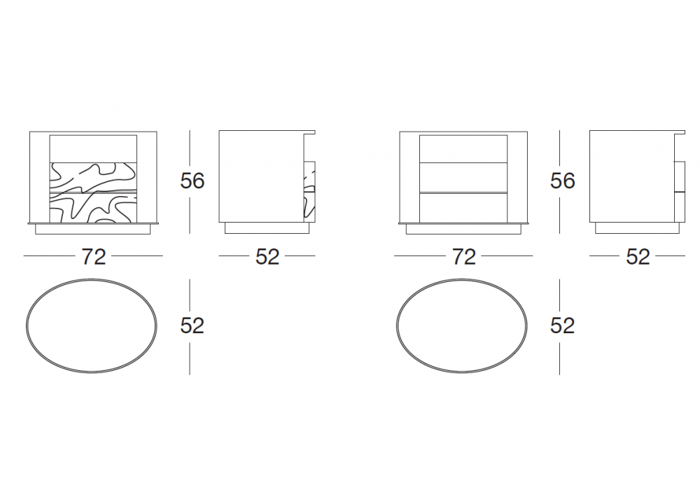 Elise diseñada por Giuseppe Iasparra para Longhi es una mesilla de noche con base en metal brillante o mate, estructura revestida en piel y cajones en chapa de madera. Tapa de mármol o espejo. Bajo pedido cajones a juego con la estructura.