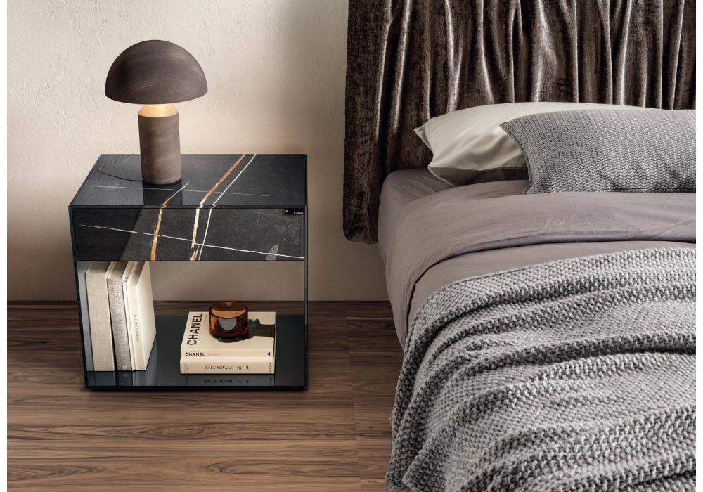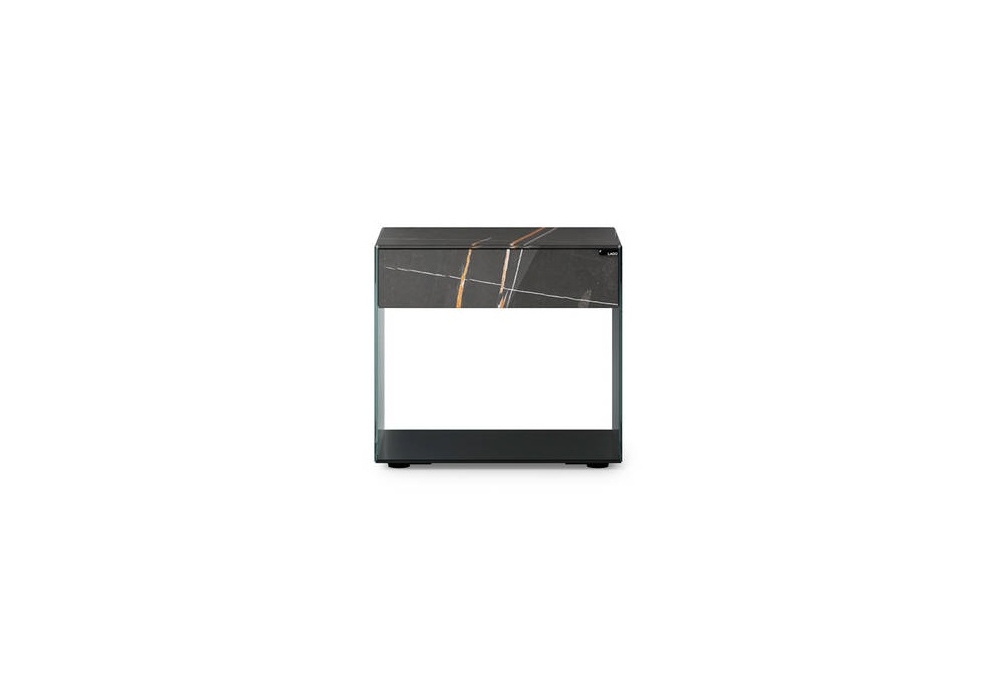 UpGlass diseñada por Daniele Lago para Lago es una mesita de noche realizada en cristal. Disponible en diferentes acabados y dimensiones.
