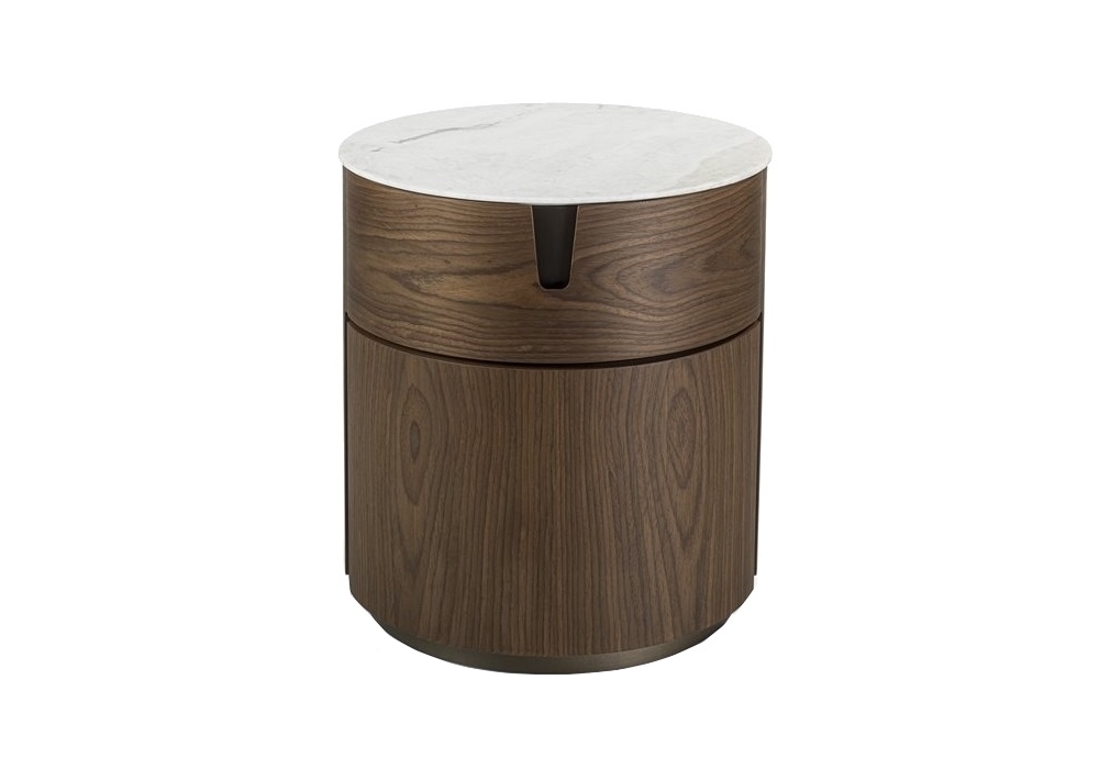 Tylsa Night 54 diseñada por D. Radice para Porada es una mesita de noche con dos cajones con estructura en fresno o nogal canaletta. Base de metal en acabado Bronzoro y tapa en madera o mármol. Tiradores de empotrar con base metálica en acabado Bronzoro. Interior de los cajones en acabado titanio resistente a los arañazos.