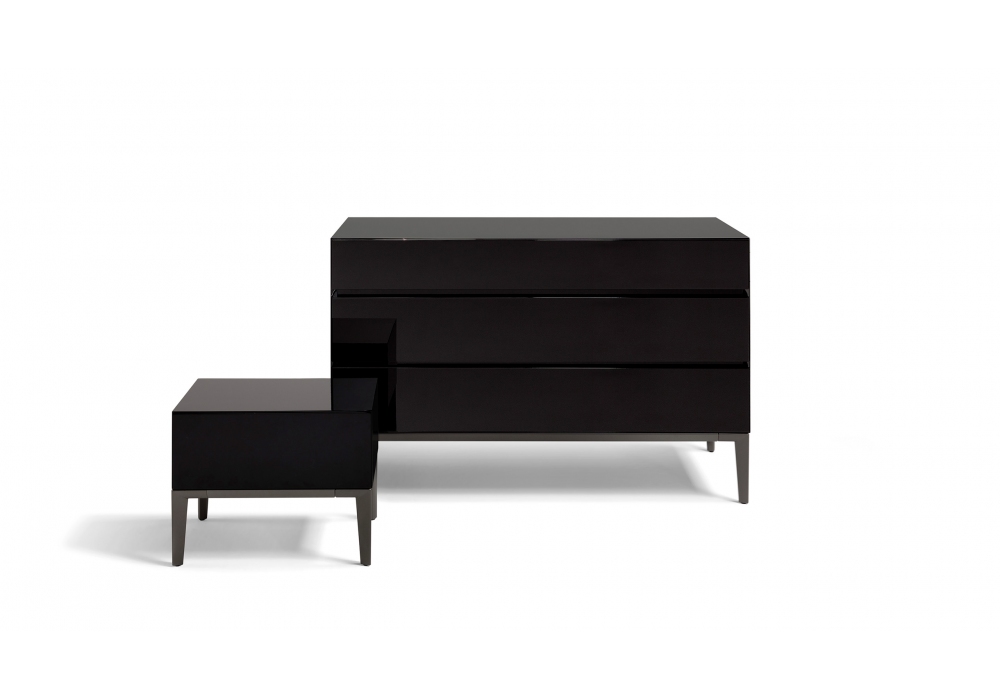 Avenue diseñada por Joe Garzone para Conte Casa es una mesilla de noche realizada con estructura en madera chapada en diferentes esencias o lacada brillo o mate, pies en metal fundido a presión pintado y cajones interiores en madera chapada efecto piel. Disponible en diferentes acabados y dimensiones.
