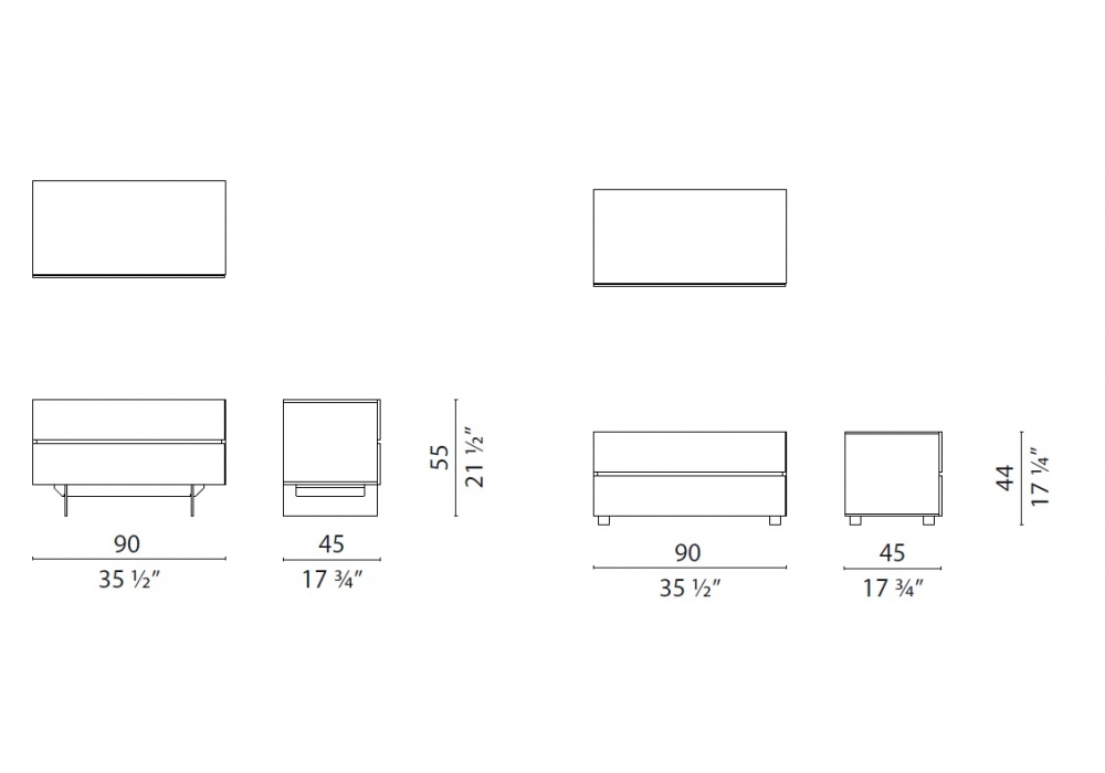 Uni Notte diseñada por Giulio Cappellini para Cappellini es una mesilla de noche con base de palas o patas. Estructura de paneles de conglomerado de madera de densidad media lacados mate o brillante.