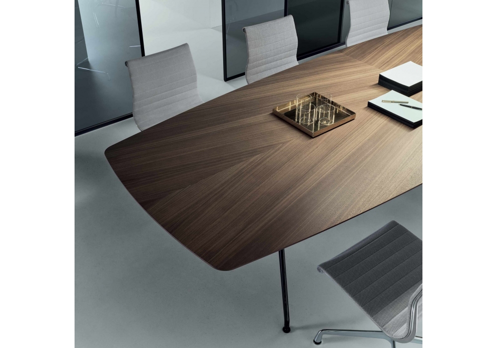 Manta diseñado por Giuseppe Bavuso para Rimadesio es un sistema de mesas modular de nuevo concepto. Una exclusiva estructura en aluminio, con tres, cuatro o seis patas, caracteriza una serie de propuestas con tableros de forma redonda y boatshapoed disponibles en una excepcional variedad de acabados, del cristal lacado o transparente al roble termotratado hasta el acrílico.