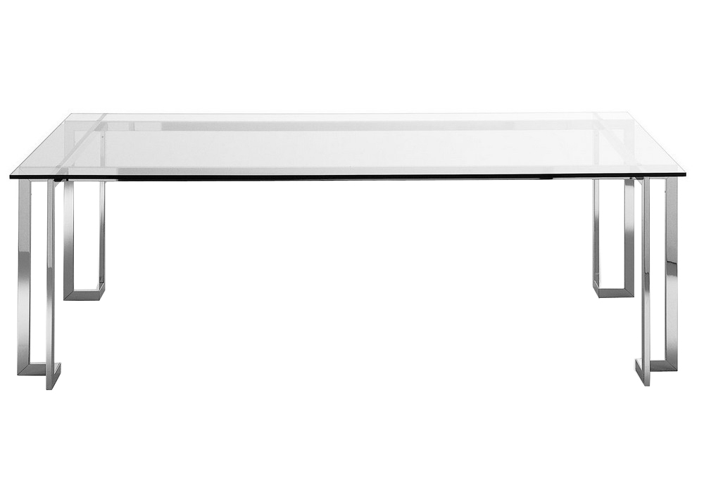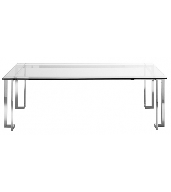 Lord XL diseñada por Pierangelo Gallotti para Gallotti&Radice es una mesa con tapa de cristal transparente de 19mm. Estructura en acero inoxidable brillante (50x25x3mm). Disponible también en acero inoxidable satinado.