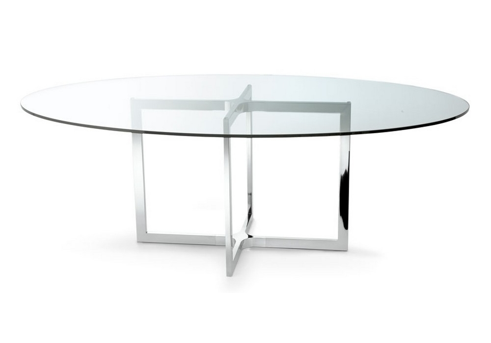 Raj 4 Light diseñada por Ricardo Bello Dias para Gallotti&Radice es una mesa con una base con "4 maneras" aluminio cromado central parte y 15mm transparente tapa de cristal. Acero inoxidable brillante base.