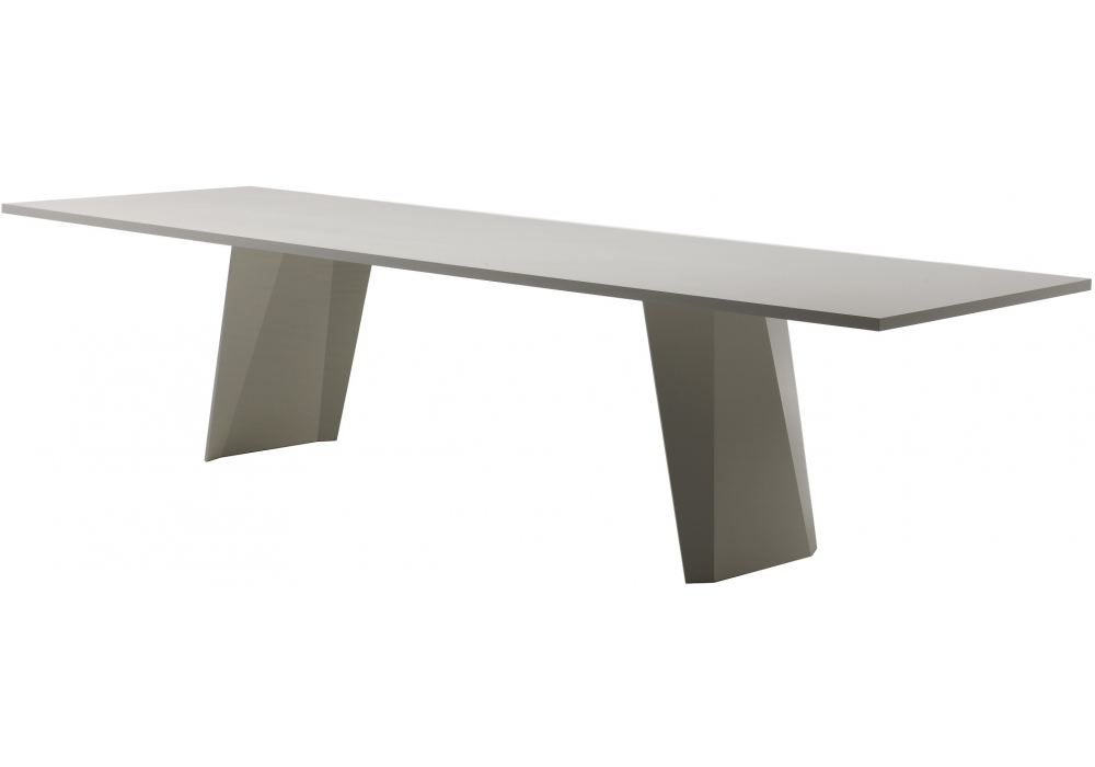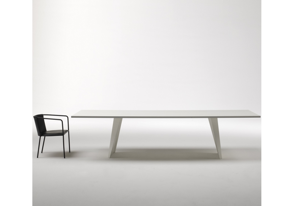 Wedge table designed by Arik Levy for Living Divani makes for a strong but not intrusive presence. With its linearity and simplicity, it offers a set of sculptural symmetries, inspired by the lightness of origami. Rectangular table in aluminium for indoor/outdoor. With leg in DOLUFLEX 4mm panel fi nished with IRONX technology. Top made with DOLUFLEX 28mm panels fi nished with folding edge. Finished with aluminium and polyurethane lacquer for outdoor, in the colours of our collection.