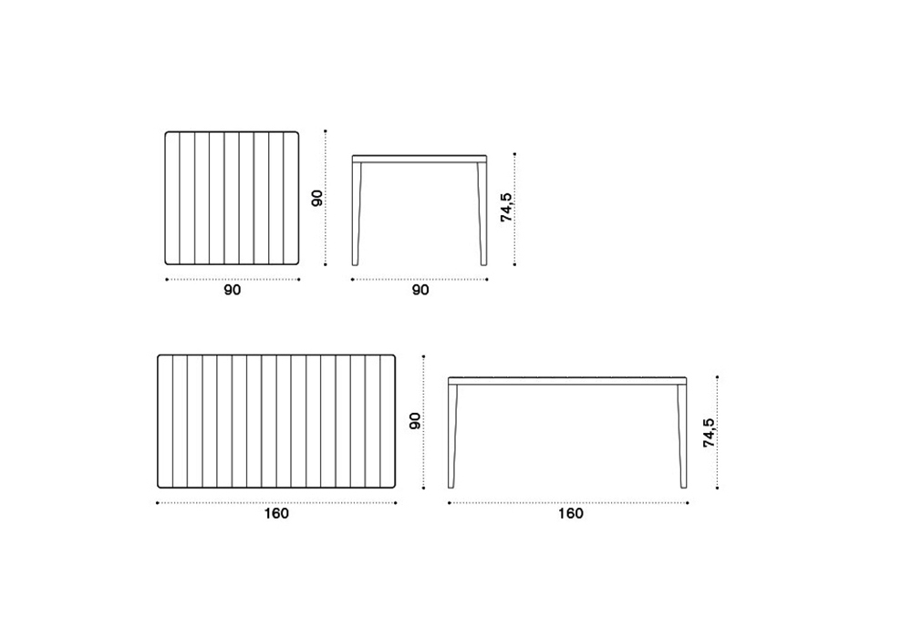 | Dimensiones | 90 x 90 x H 74,5 cm; 160 x 90 x H 74,5 cm. |